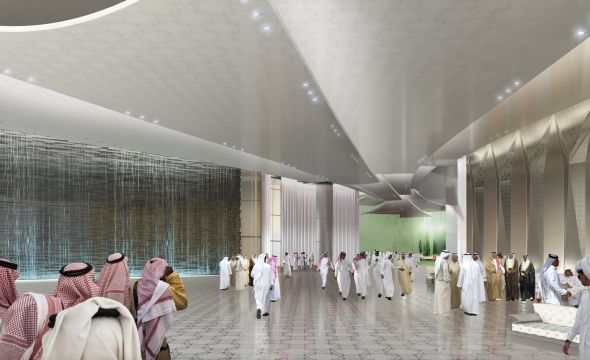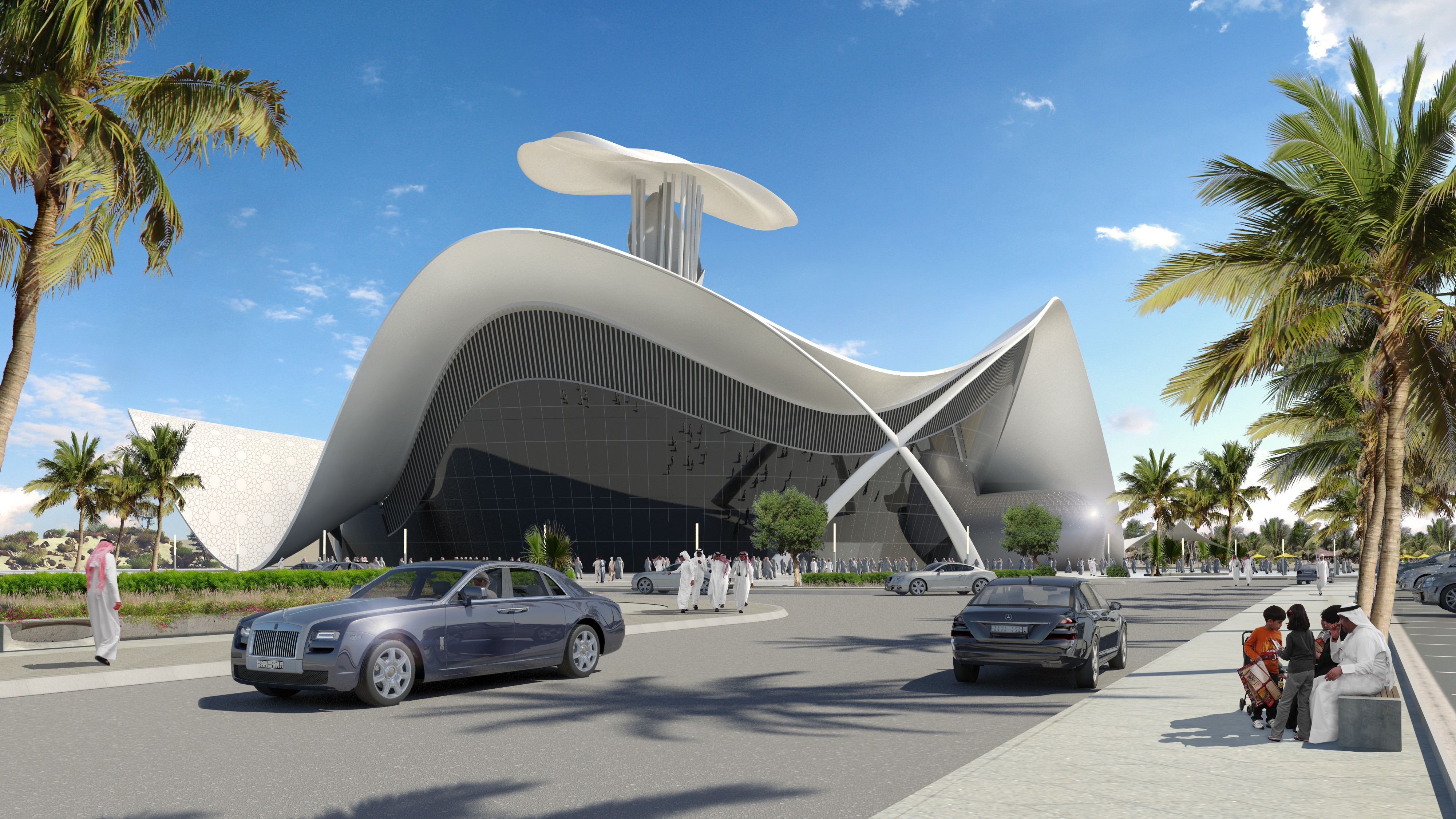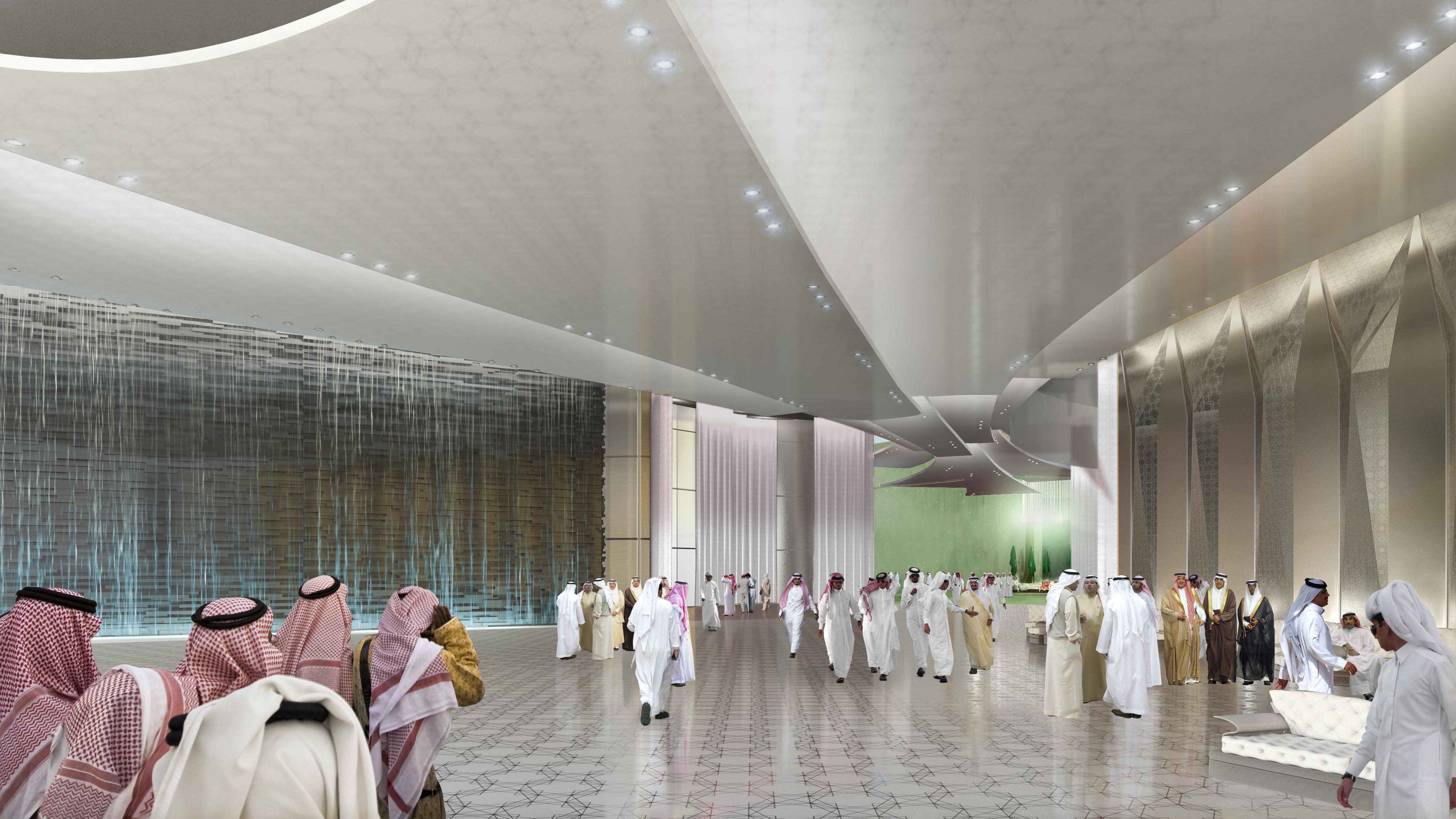 The sophisticated design of the Celebration Hall incorporates and captures the originality of celebrations and hospitality by combining Najd Architecture tradition, heritage and technological progress whilst maintaining a modern, flexible and innovative design approach. The dynamic free flowing spaces guide visitors with ease and comfort throughout the luxurious interiors while the rhythmic motion of the tent-like structure ultimately defines the architectural form and space of the Celebration Hall.