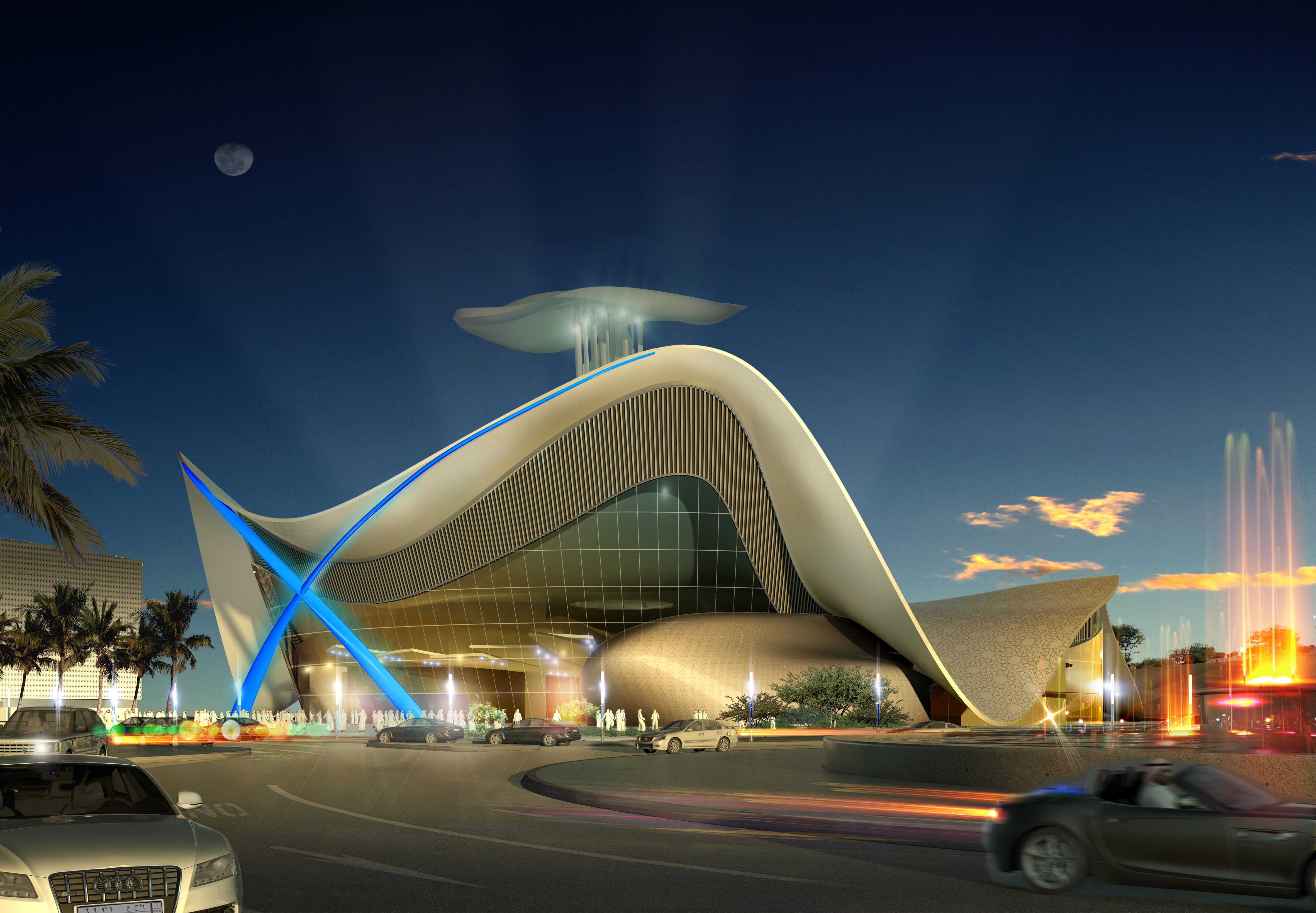 An intelligent landscape design creates interior green gardens and balances the strong geometry of the building, providing further pleasant environment and bringing “green architecture” into the Diplomatic Quarters. The outer shell serves as a traditional Malqaf element floating above the landscape, providing natural cooling systems by drawing the prevailing winds into the interior shell.
